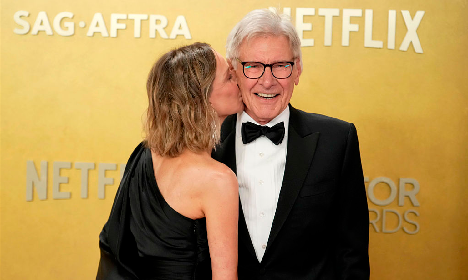 Пара з’явилася перед фотографами у стриманих чорних образах, що ідеально перегукувалися з концепцією заходу переосмислення класичного голлівудського стилю. 83-річний Форд обрав елегантний чорний костюм із краваткою, а 61-річна Флокхарт зробила ставку на витончену асиметричну сукню з відкритим плечем. Вони трималися поруч, обмінювалися усмішками й іноді жартували між собою, демонструючи ту саму легкість стосунків, яка вже багато років викликає симпатію публіки.