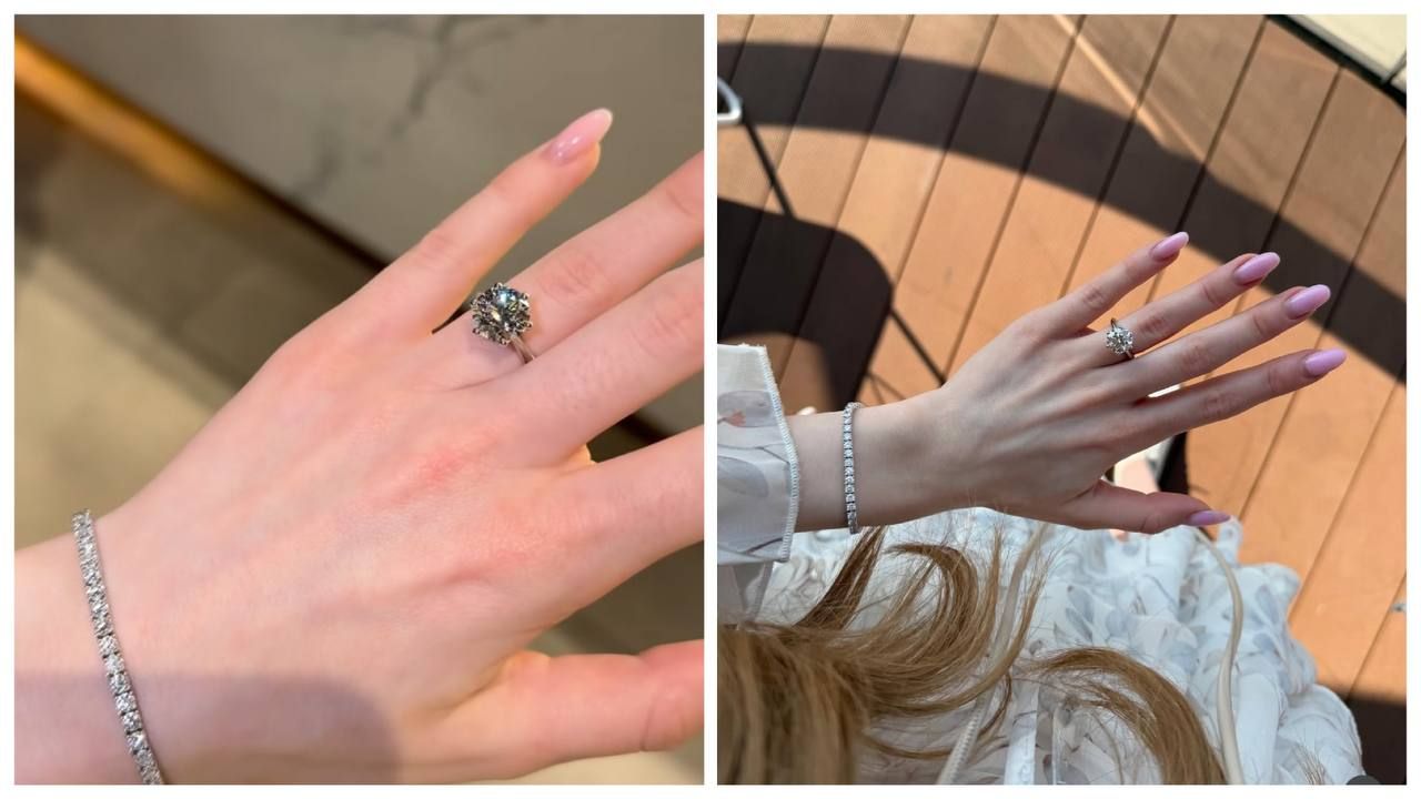 Кудашова показує з усіх ракурсів свою розкішну каблучку, а її зап'ястя прикрашає діамантовий браслет.